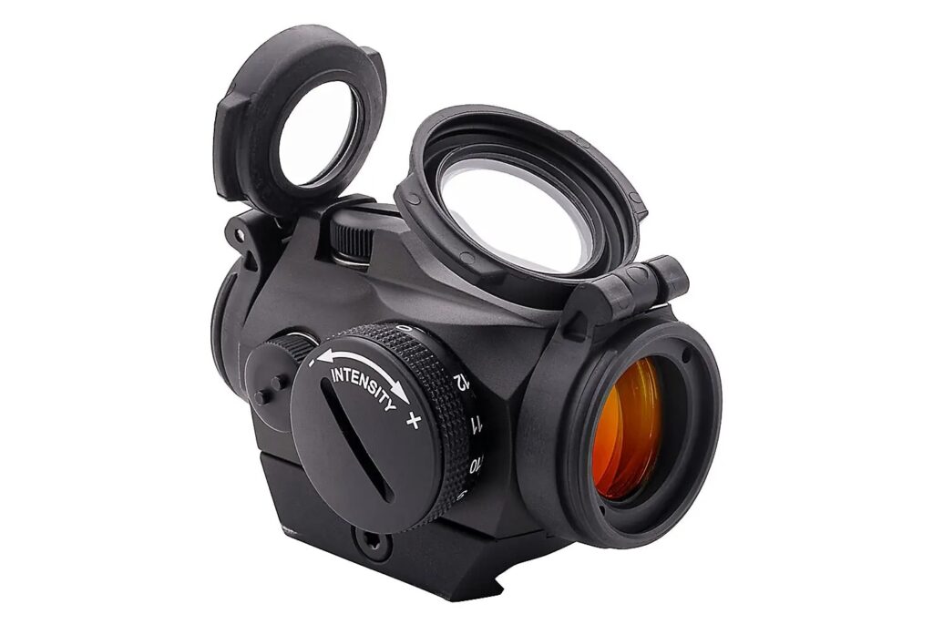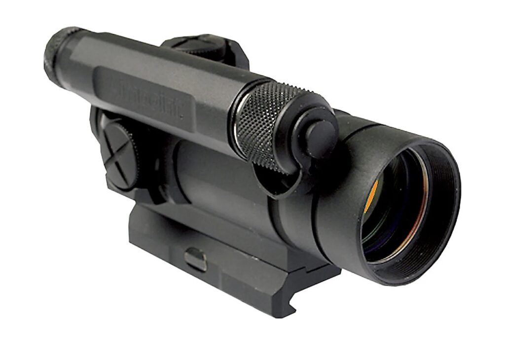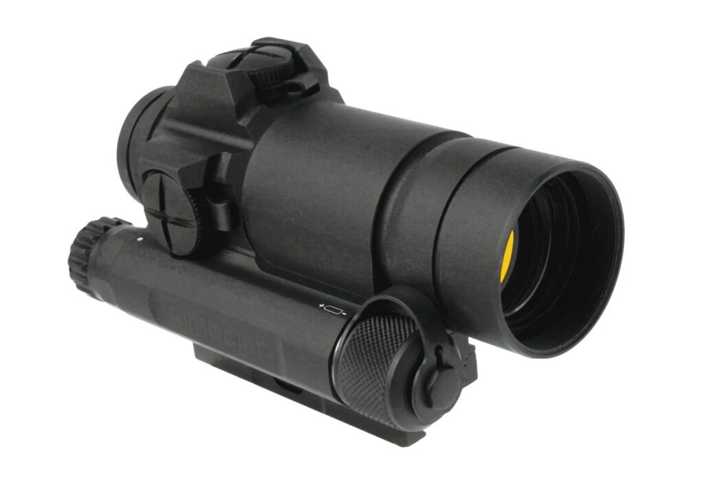 アメリカ軍は18ヵ月に及ぶ過酷なテスト(高温、低温、物理的衝撃、水没テスト)を重ね1997年にアメリカ軍の制式採用となりました。開祖にして今なお王道の先頭を走り続ける真正レットドットサイト。それがAimpointです。